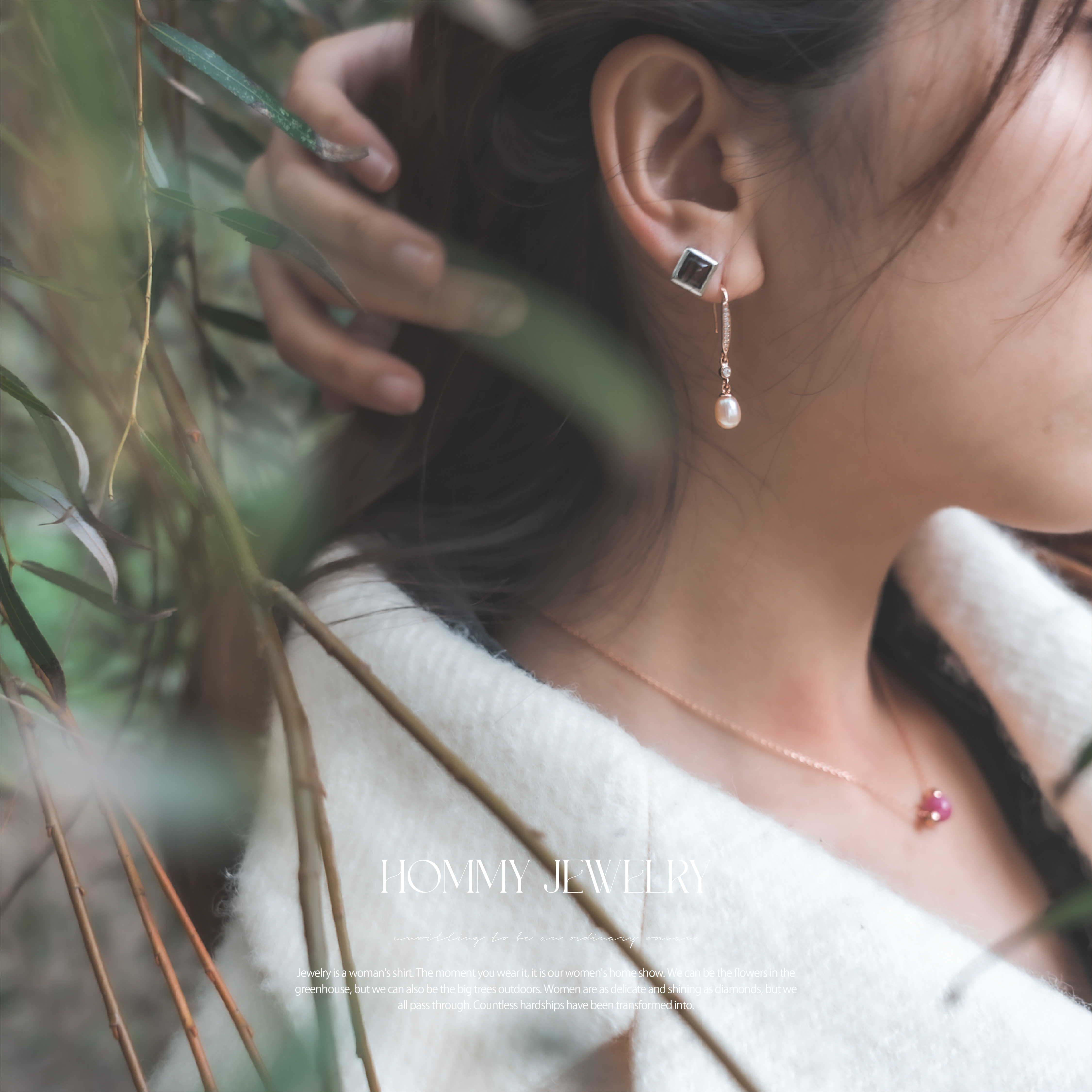 最後配戴上Hommy Bicolore 黑瑪瑙珍珠耳環
